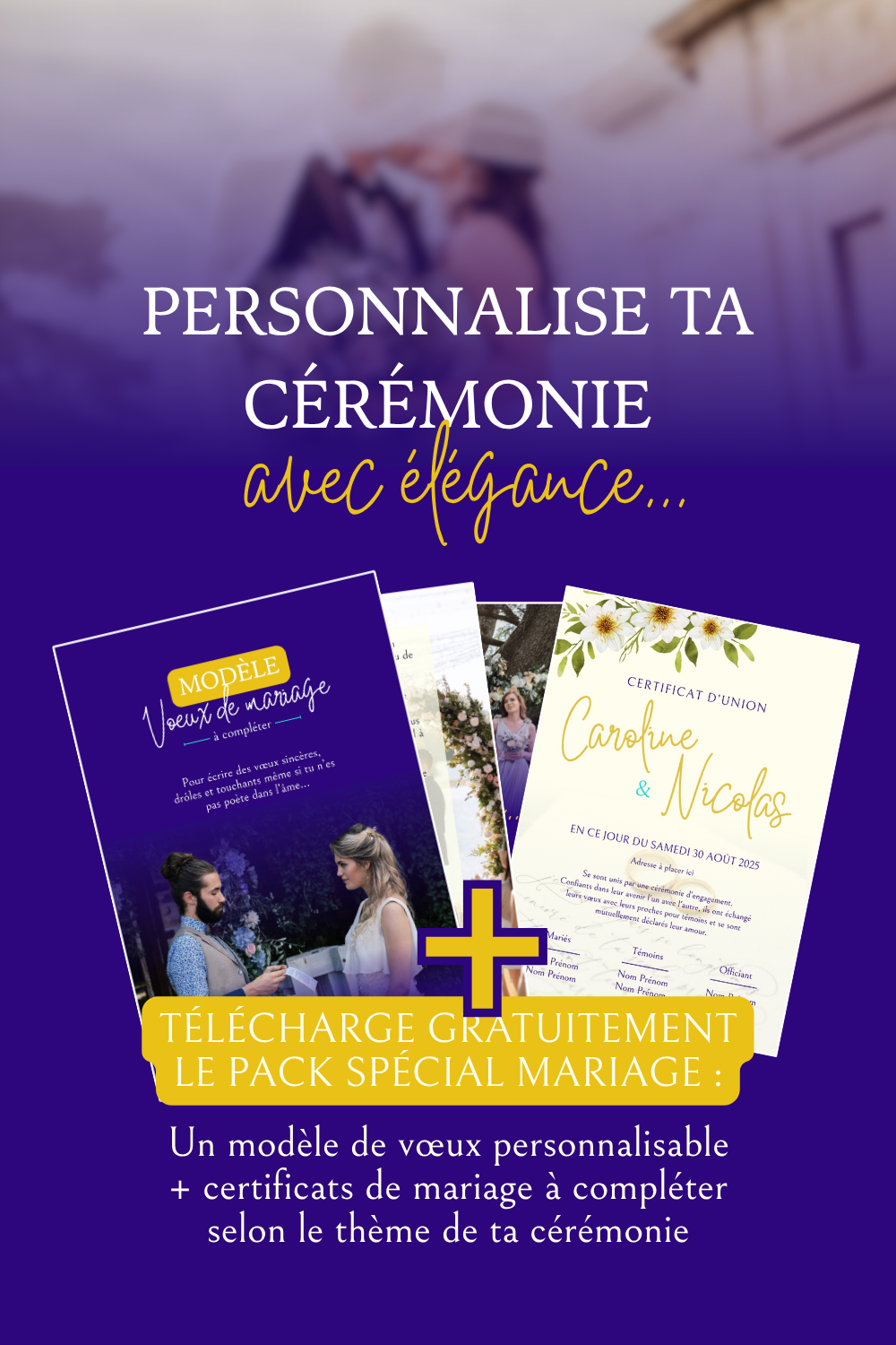 + Des certificats de mariage à compléter selon le thème de ta cérémonie (bohème, champêtre, moderne…)